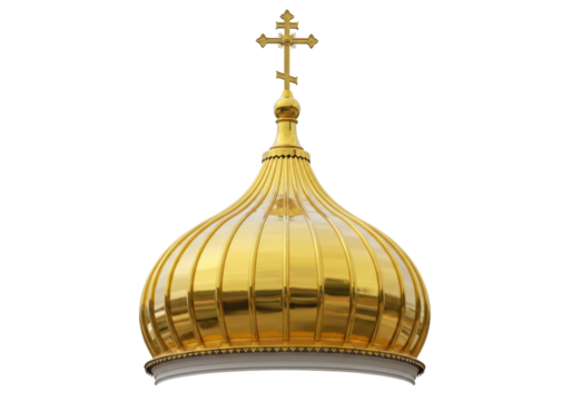Isolated Golden Dome of an Orthodox Church with a Cross, Decorative Religion Architecture