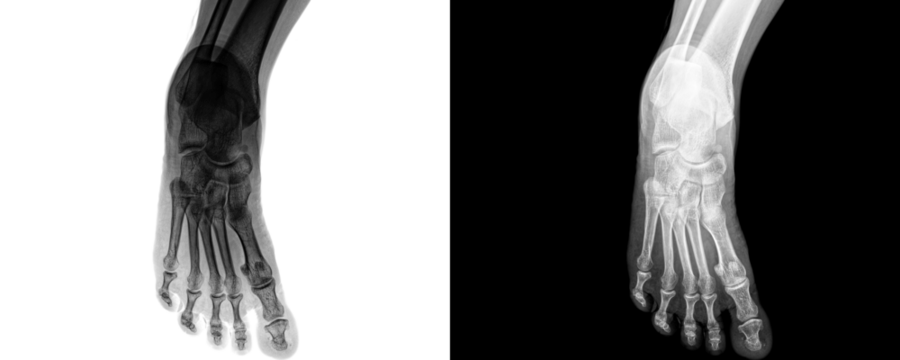 Anterior Projection X-Ray of Human Foot Showing Detailed Skeletal Framework and Bone Anatomy