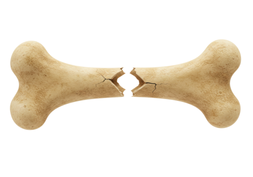 Isolated broken bone illustration of a fractured skeletal object of a mammal or dinosaur