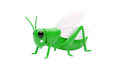Isolated Green Grasshopper Standing Sideways with Antennae Visible Against Simple Backdrop