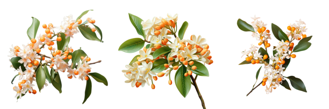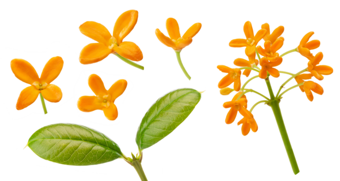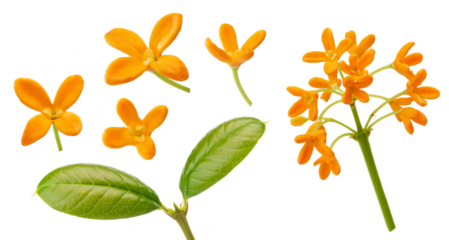 Sweet Osmanthus fragrans orange flowers against a transparent background