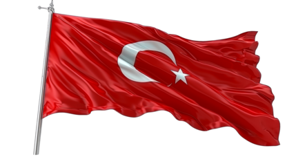 Turkish flag waving on transparent background: crescent moon and star symbol of turkey