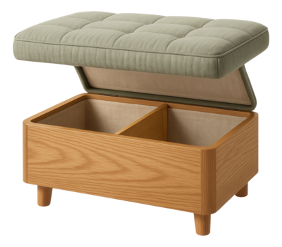 A dual-compartment storage ottoman made of eco-friendly materials, designed for an eco-conscious home.