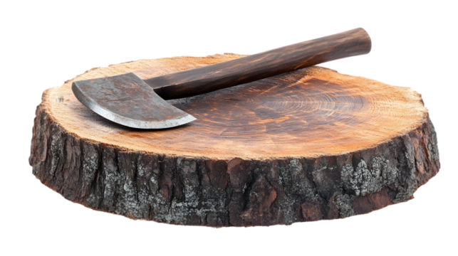 Rustic Axe on Wooden Log Slice  Lumberjack  Woodcraft  Camping  Tool   Forest  Nature   Ou