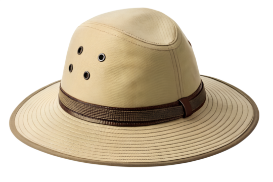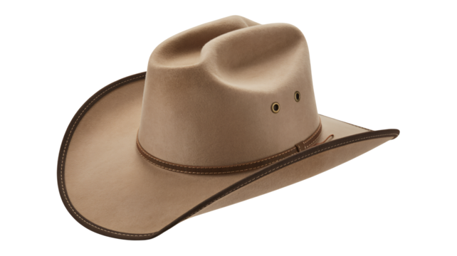 Tan felt outback hat PNG isolated on transparent background, classic Australian headwear for sun protection and outdoor fashion