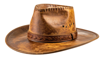 Brown leather outback hat PNG isolated, Australian style headwear for sun protection and outdoor fashion accessory on transparent background