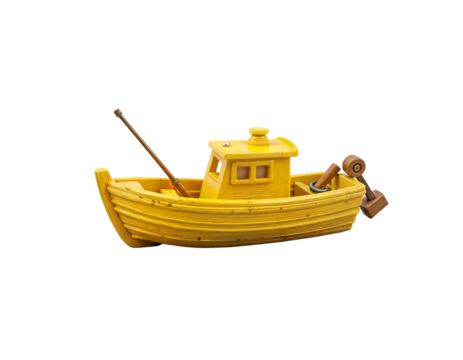 Yellow Toy Fishing Boat with Outboard Motor and Fishing Rod