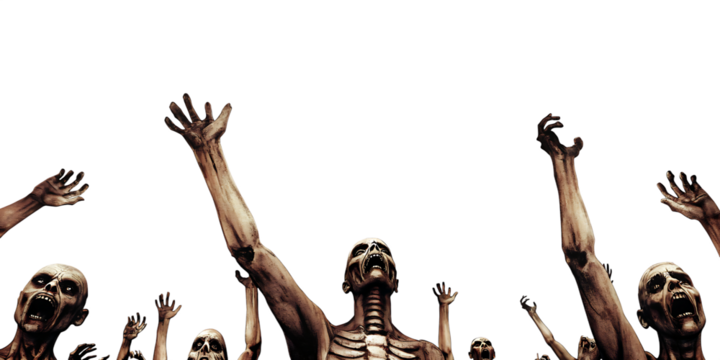 Undead Figures with Skeletal Features and Open Mouths zombies reaching isolated on a transparent background