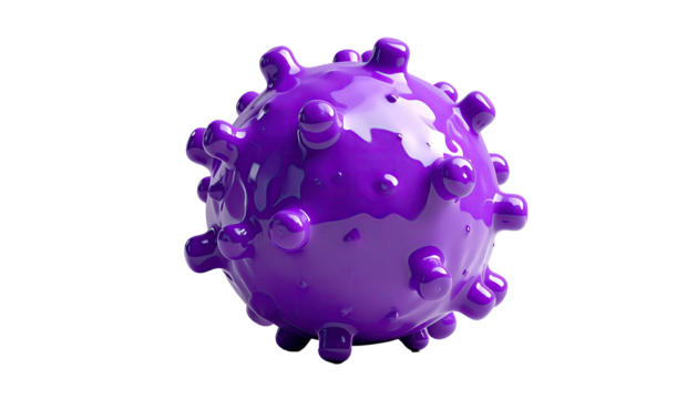 Glossy purple sphere with protruding bumps against a black background