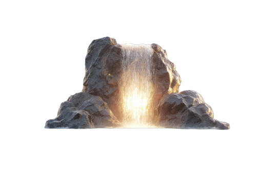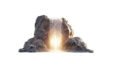 A digital waterfall cascading from a rocky outcrop