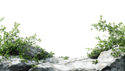Rugged Granite Rock Formation with Sparse Greenery on White Background, cut out transparent