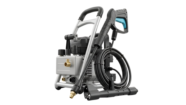 Portable Electric Pressure Washer with Black and Gray Components on White Background