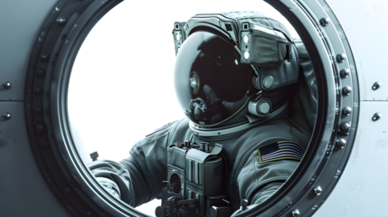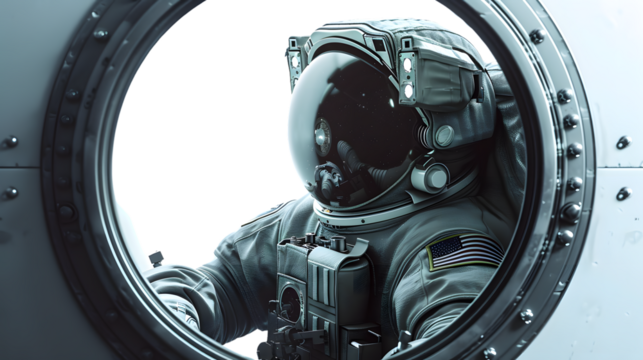 Astronaut Viewing Outer Space Through Porthole - Professional Outer Space Exploration Image
