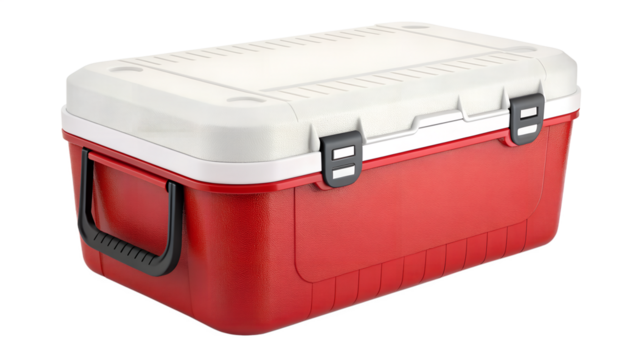 Wicker picnic basket with red checkered cloth isolated on transparent background