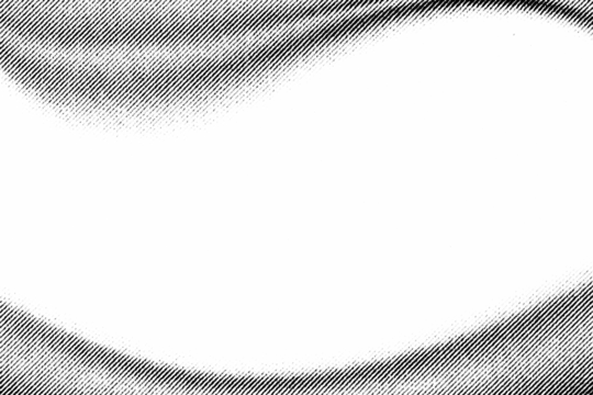 Macro halftone of curved diagonal stripe shading forming a soft vignette border, black printed pattern isolated on transparent background.