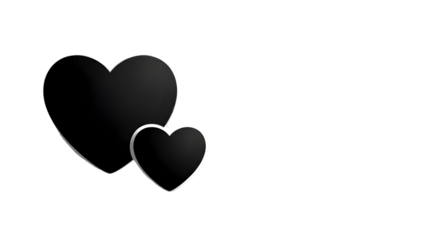 Two abstract hearts in shades of black and grey with silver outlines on a black background