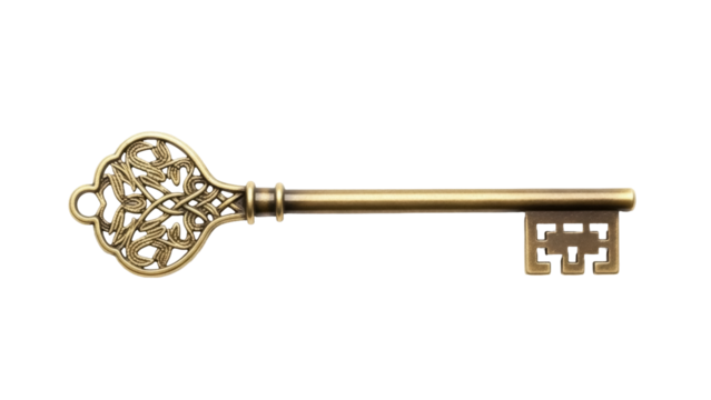 Isolated old-fashioned key, antique bronze, fantasy or treasure concept for secret opening tool