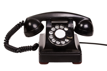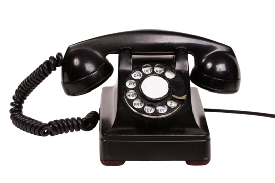 An old dial desk phone on a transparent background.