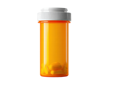 Orange pill bottle, plastic container, white cap, medication, isolated, healthcare, pharmacy