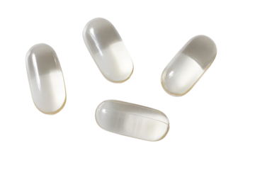 Close-up of two transparent, yellow oval capsules, likely softgels, against a black background