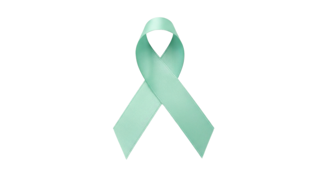 Teal ribbon isolated on transparent background to promote ovarian cancer awareness