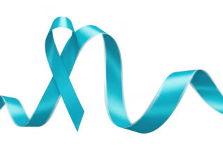 A bright teal awareness ribbon symbol for prostate cancer or ovarian cancer awareness, isolated on transparent background