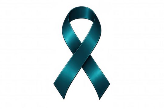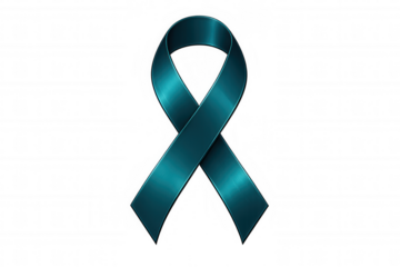 Teal awareness ribbon representing solidarity for cervical cancer, sexual assault survivors, and polycystic ovary syndrome, isolated on transparent surface