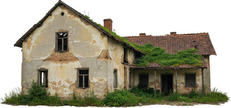 Abandoned House in Field background isolated on a Transparent background, PNG file.