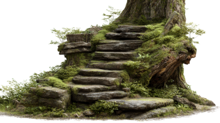 Ancient Stone Steps in Forest background isolated on a Transparent background, PNG file.