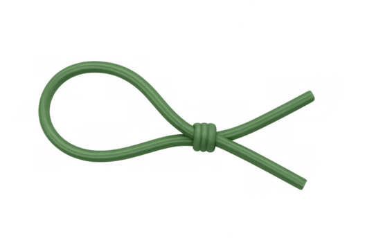 Green rope creating a loop with overhand knot on transparent background