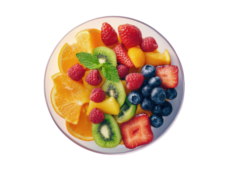 Isolated Vibrant Fruit Salad Bowl Overhead Shot