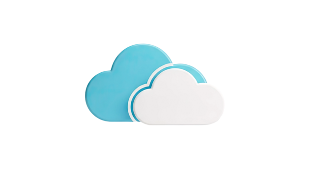 3D Two stylized clouds, one blue and one white, overlapping on transparent background