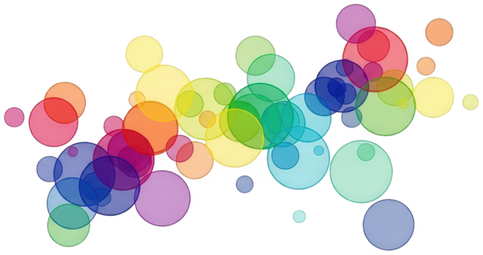 Colorful overlapping circles on transparent background