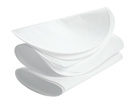 Three overlapping, pristine white sheets, slightly curved with soft lighting