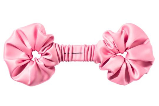 Pink satin heatless hair curling ribbon for overnight waves on a transparent background