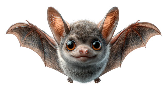 horror halloween isolated png transparent A cute bat with oversized ears and bright eyes, showcasing its unique features in a whimsical and playful manner.