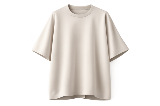 Beige T-shirt mockup presented on transparent background, apparel stock.
