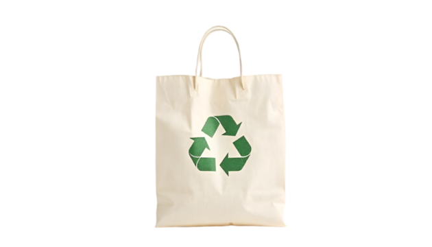 Eco-friendly paper bag with green recycling symbol