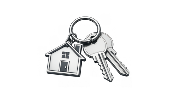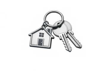 House keys with home shape keychain representing real estate, residential property market, and new home ownership
