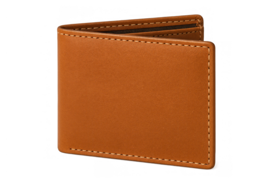 Brown leather bifold wallet for men, carrying money and credit cards, finance and luxury accessory on transparent background