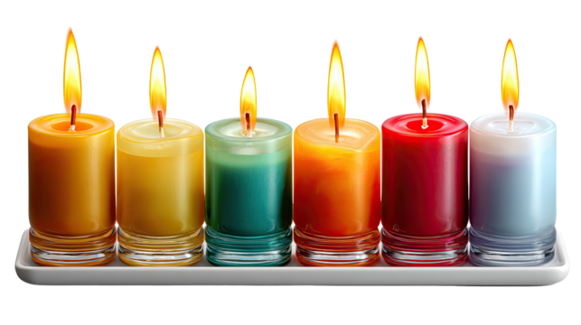 Illuminating Unity: A vibrant array of colorful candles, each with its own flickering flame, cast a warm glow, symbolizing togetherness and shared light.