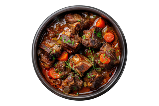 Rich oxtail stew in earthenware pot savory aroma fills the air