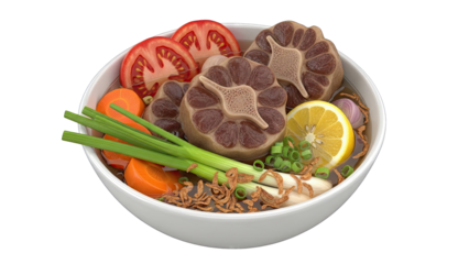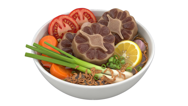 Hearty oxtail soup with fresh herbs, chili, and star anise in a ceramic bowl.