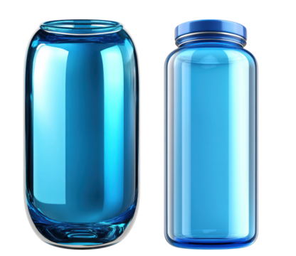 Blue hydrogen cylinder isolated on transparent background, Set of