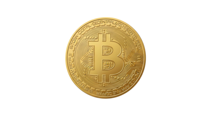 Golden bitcoin coin isolated PNG on transparent background, cryptocurrency digital money for investment and finance, decentralized peer to peer network
