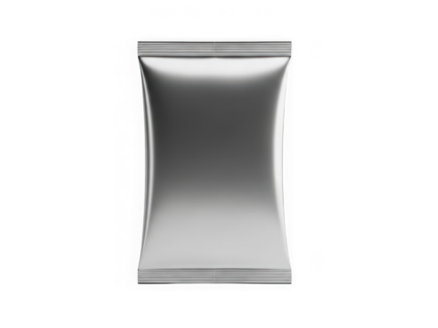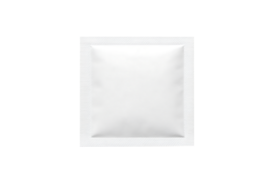 A plain white square sachet or packet with sealed edges isolated on transparent background
