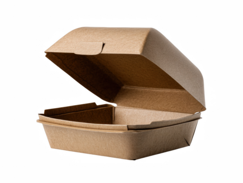 Brown cardboard food container packaging box empty take away eco shot meal on transparent background