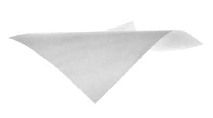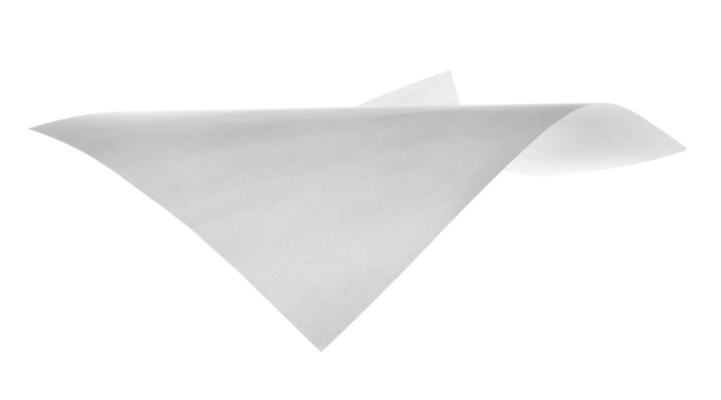 Single white paper flying, sheet falls and twists isolated on white, clipping path