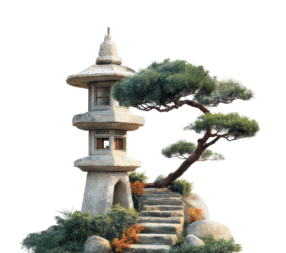 Serene japanese pagoda garden tranquil nature view isolated on transparent background