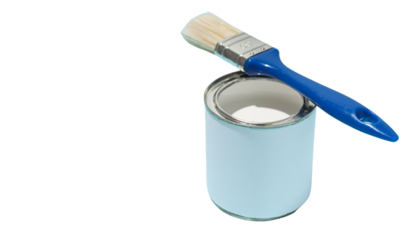 Can of white paint with brush
